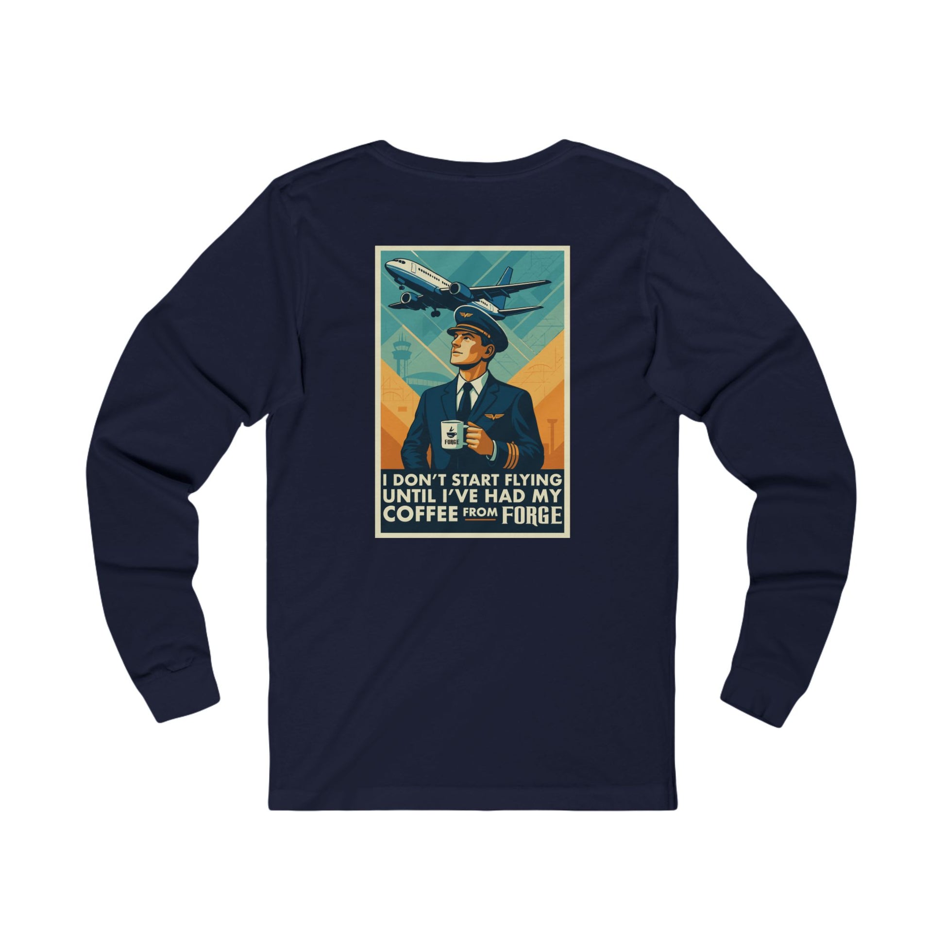 Long Sleeve Pilot Coffee Tee — "I Don't Start Flying Until I've Had My Coffee from Forge"