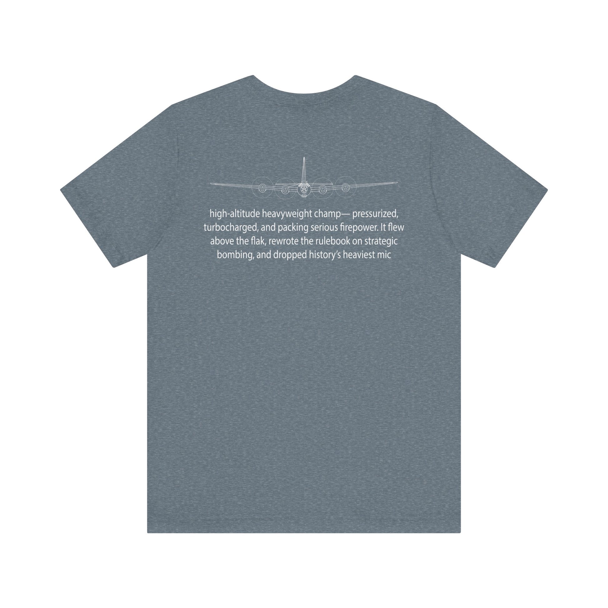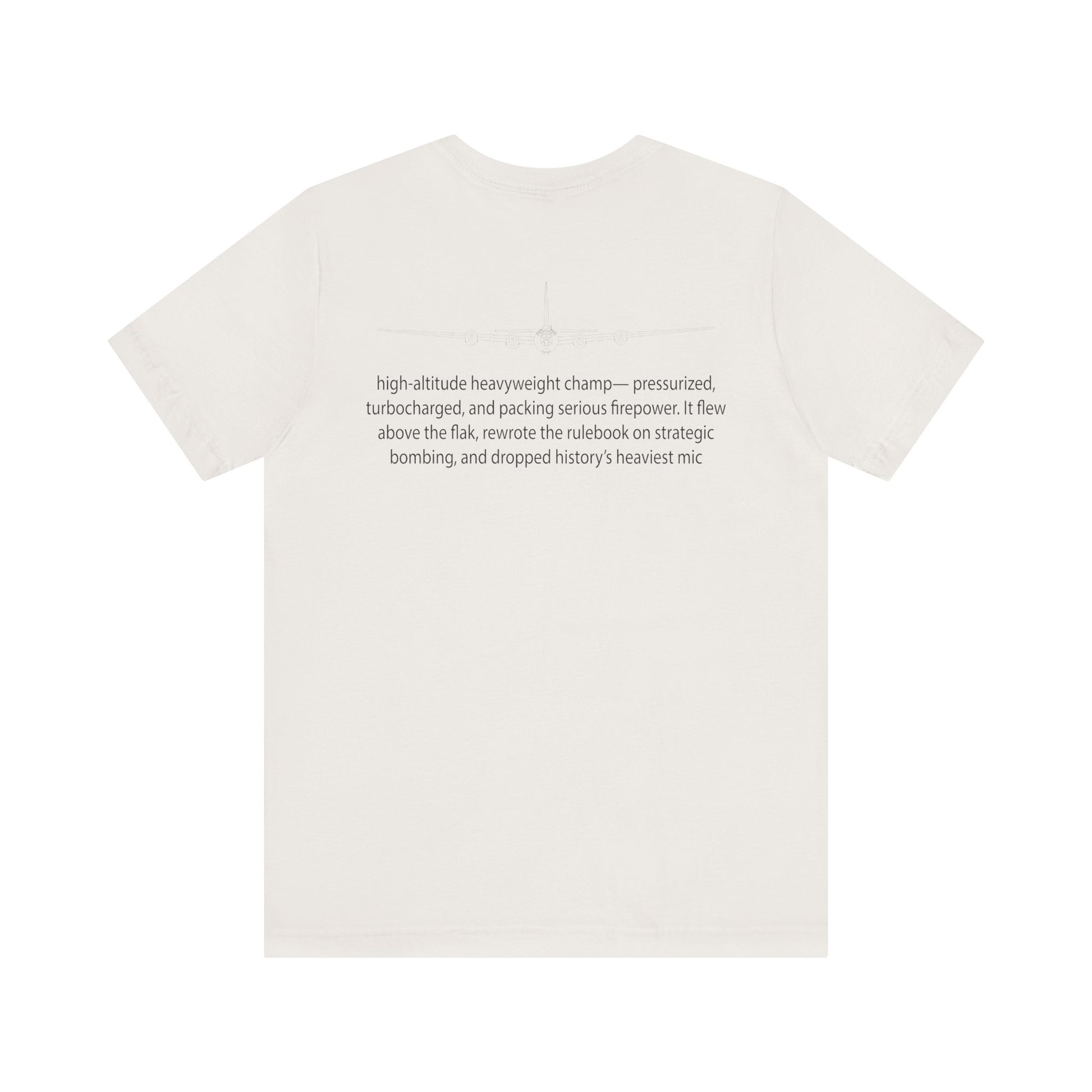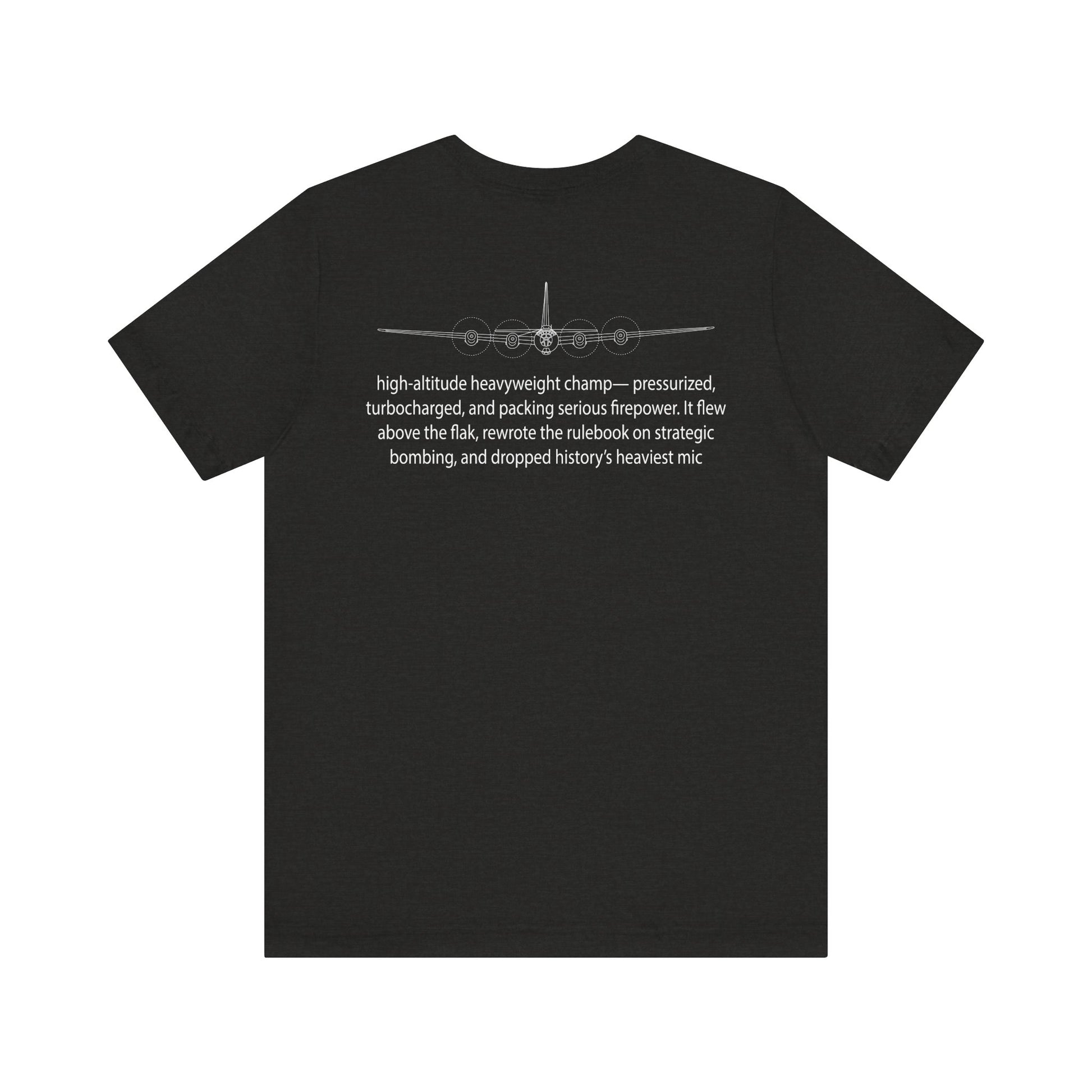 Say hello to the B-29 Superfortress—the Cadillac of bombers with brains, brawn, and altitude to spare. Pressurized cabins, remote-controlled guns, and a payload that made history (twice). It didn’t just fly—it cruised above the clouds like it owned the sky. From the firebombing of Tokyo to the atomic age curtain call, the B-29 changed the rules and rewrote the endgame. This tee honors the sleek, high-flying heavyweight that dropped more than bombs—it dropped jaws. Whether you’re a history buff, aviation nerd, or just love a good comeback story at 30,000 feet, this shirt’s got you covered. Literally and historically.
