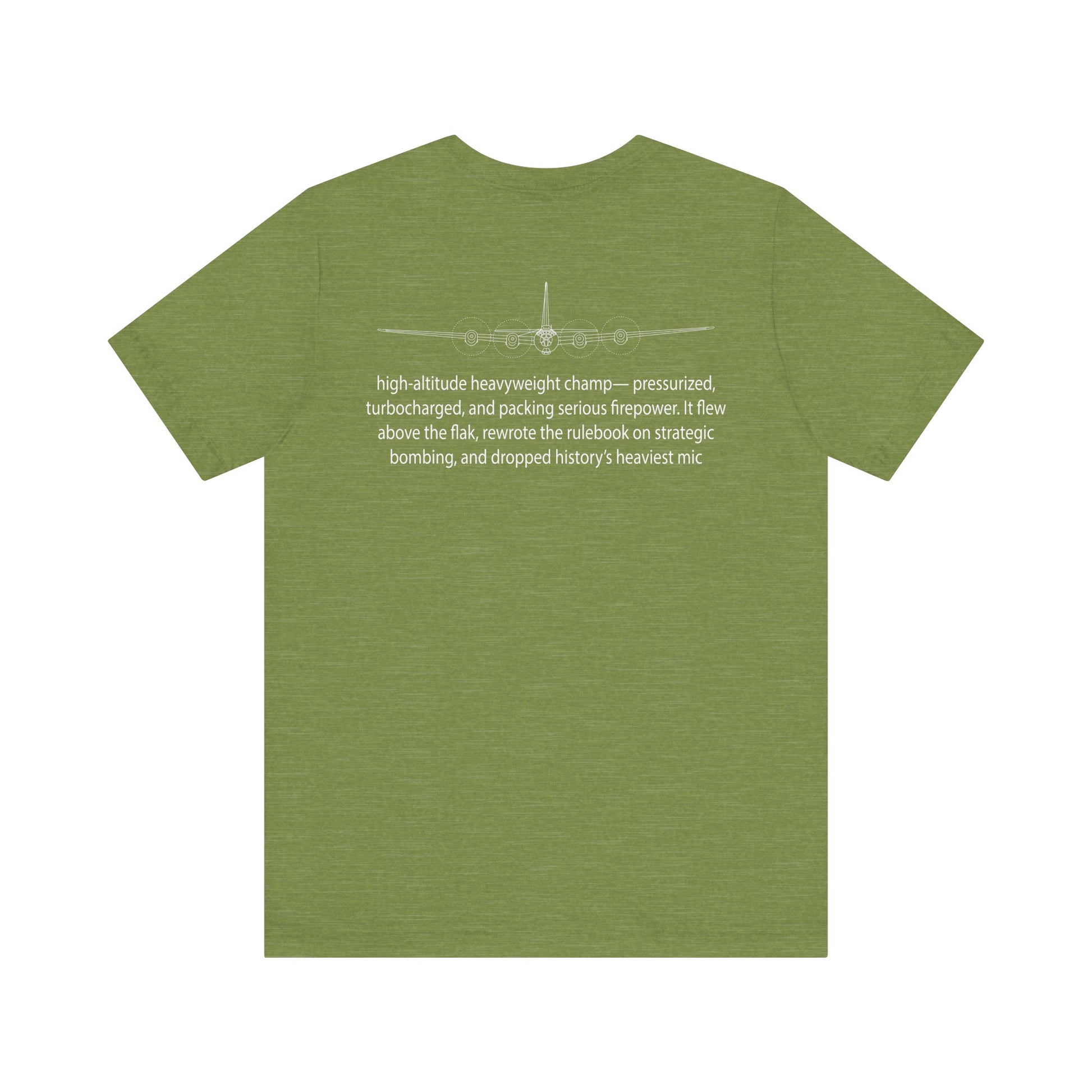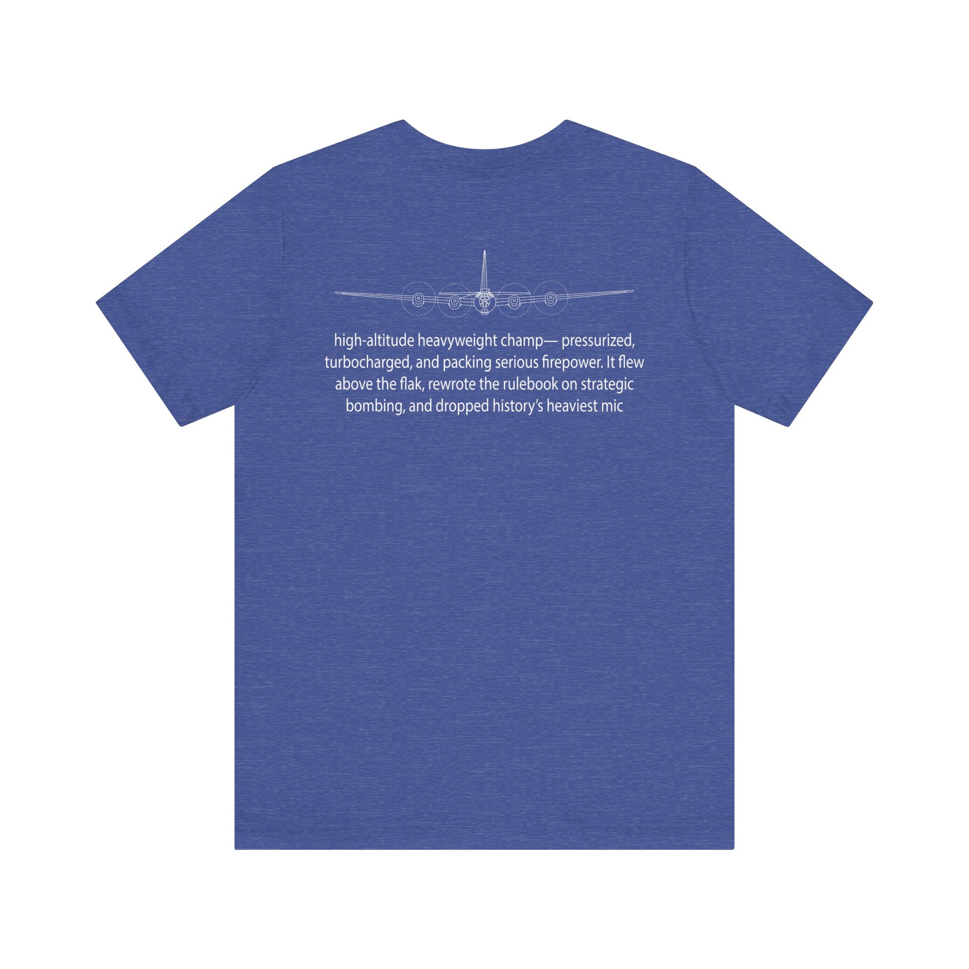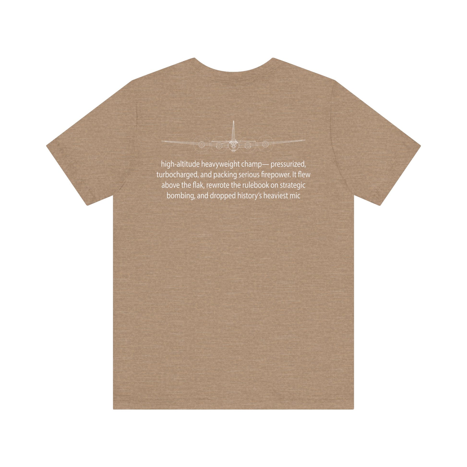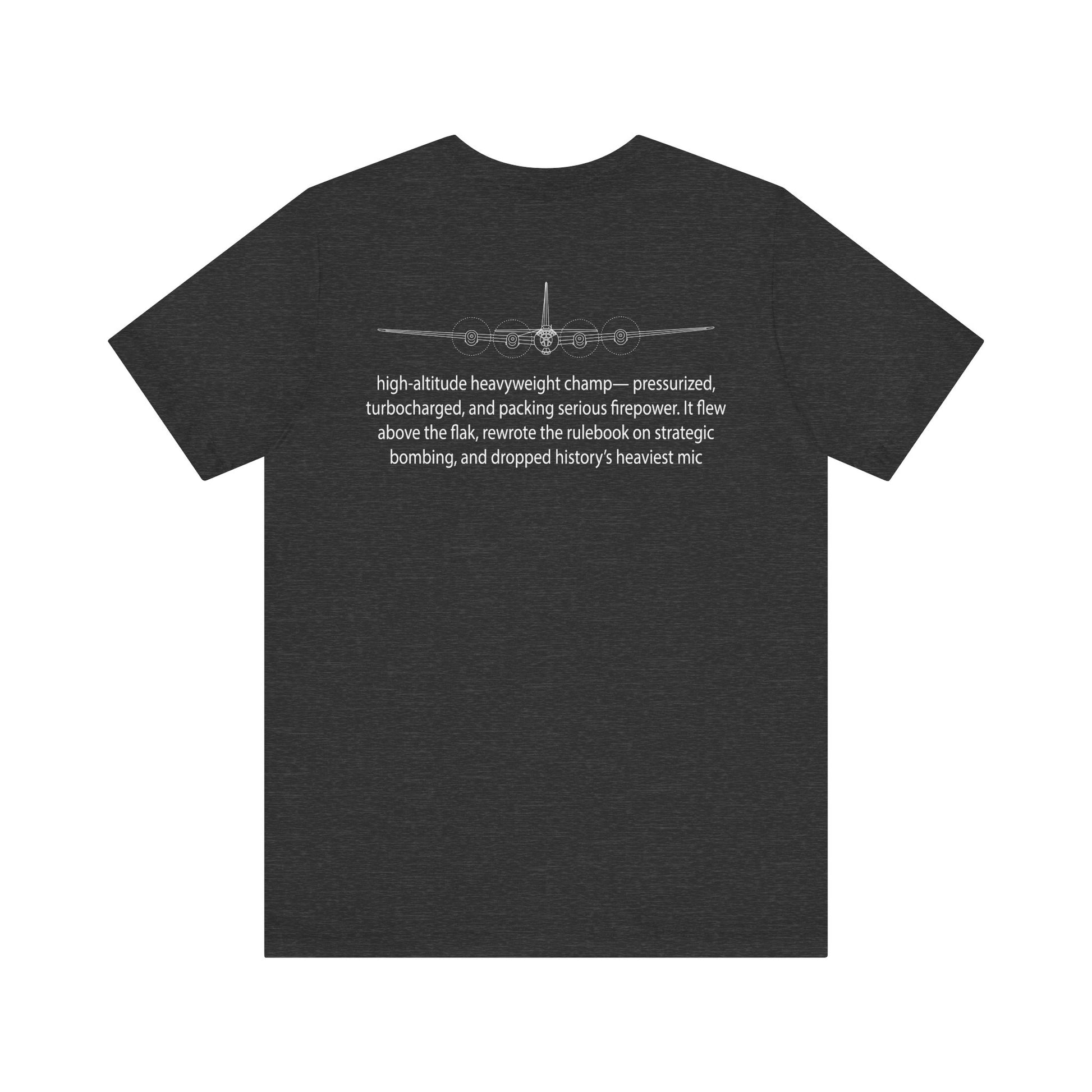 Say hello to the B-29 Superfortress—the Cadillac of bombers with brains, brawn, and altitude to spare. Pressurized cabins, remote-controlled guns, and a payload that made history (twice). It didn’t just fly—it cruised above the clouds like it owned the sky. From the firebombing of Tokyo to the atomic age curtain call, the B-29 changed the rules and rewrote the endgame. This tee honors the sleek, high-flying heavyweight that dropped more than bombs—it dropped jaws. Whether you’re a history buff, aviation nerd, or just love a good comeback story at 30,000 feet, this shirt’s got you covered. Literally and historically.